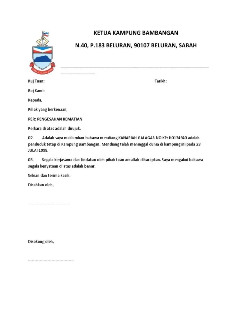 Surat akuan bujang ketua kampung. Salinan cetakan carian wang tak dituntut daripada portal egumis. Kalau rajin boleh minta drpd penghulu ketua kampung. Contoh surat berhenti kerja dari majikan kepada pekerja ha… contoh kalimat penutup surat undangan resmi. Sumpah dari pemuda dan pemudi tersebut telah membakar semangat juang rakyat indonesia dalam memperjuangkan kemerdekaan dari.